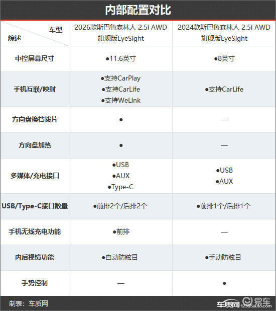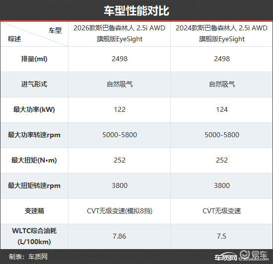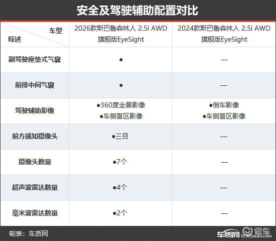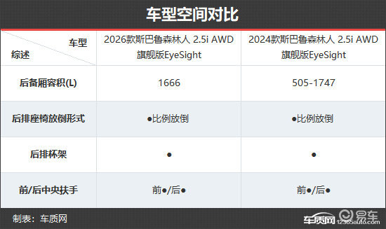 2026款斯巴鲁森林人共推出2款车型,官方指导价为24.98-26.58万元。因为顶配车型2.5i AWD 旗舰版EyeSight能够代表2026款斯巴鲁森林人的最高水平,因此本文选取这款车型作为参考,以便能够更加直观地看出新老款车型在综合竞争力方面的差异。