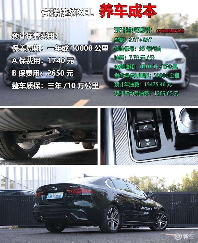 俗话说买车容易养车难,那么大幅优惠背后的养车成本又如何呢?首先是保养方面,新车保养周期为一年或10000公里,其中A保1740元,B保2650元上下(两款车型差不多),不得不承认,保养费用还是曾经那个豪华座驾的价格。至于油耗,郝哥同样以推荐配置为例,其中奇瑞捷豹XEL工信部综合油耗显示为8.01升/百公里,为了更接近真实,郝哥以再增加两个油计算,也就是10.01升,目前北京地区95号汽油的油价为7.73元/升,假如每年行驶20000公里,那么预计您的年油费为15475.46元,平均月油费为1289.62元。
