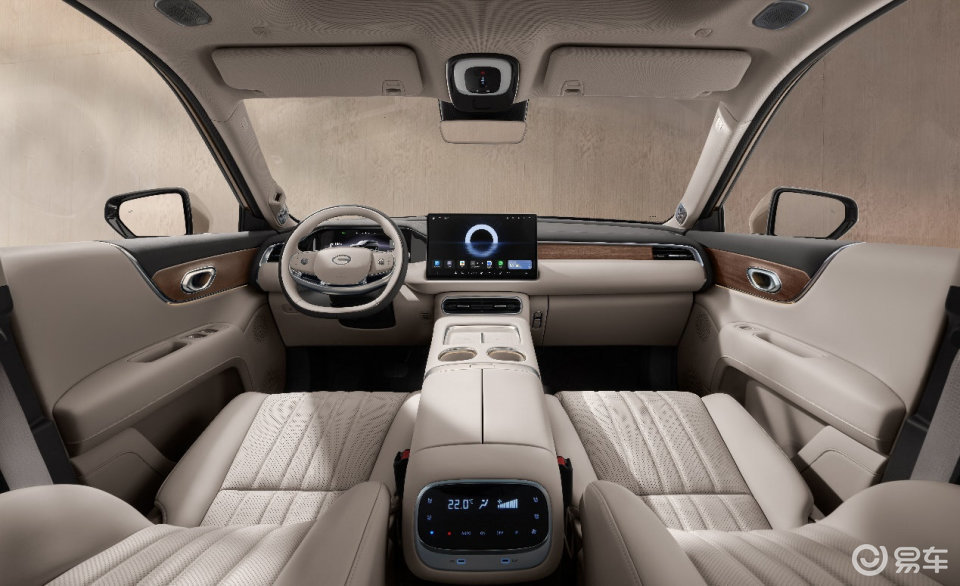 内饰用料全系标配源自北美的黑胡桃实木,前排座椅采用Nappa真皮。此外新车还搭载鸿蒙智能座舱HarmonySpace 5,支持六屏协同。