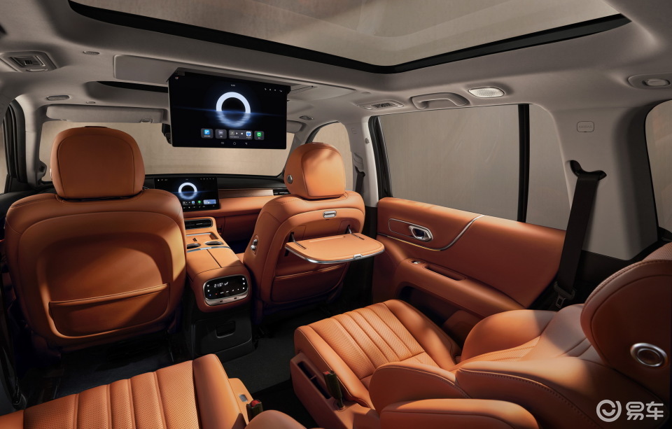二排座椅同样具备独立的按摩、通风和加热及电调,二排靠背支持137度(五座版)及148度(六座版)可调角度。二排还配备有17.3英寸娱乐屏以及小桌板,全家出行体验也相当出色。