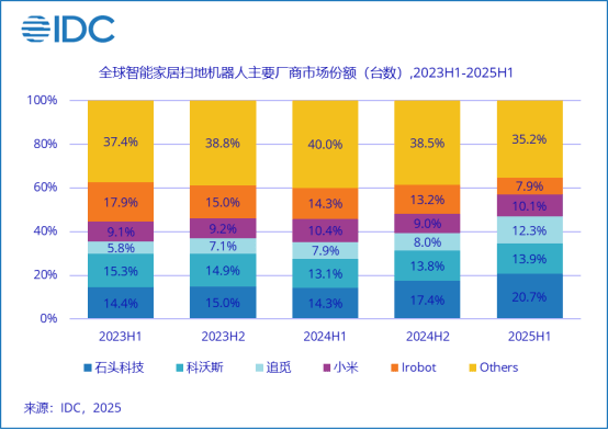 平心而论,在智能清洁家电这一主营业务上,追觅科技的表现可圈可点。IDC数据显示,2025年上半年全球扫地机器人市场保持稳健增长,出货量同比增长16.5%。在此背景下,追觅科技的全球市场份额从8.0%快速提升至12.3%,展现出强劲的发展势头。