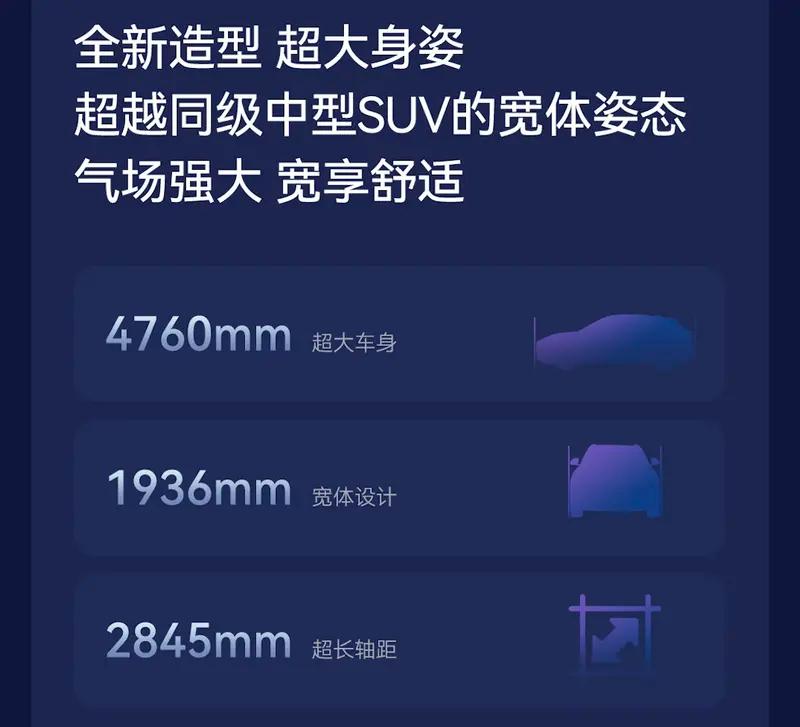 侧面来看,新车采用动感的溜背式造型,并采用时下流行的悬浮车和隐藏式门把手设计。同时,新车还搭载造型动感的18英寸五辐式低风阻轮圈。车身尺寸方面,新车长宽高为4760×1936×1650mm,轴距2845mm。