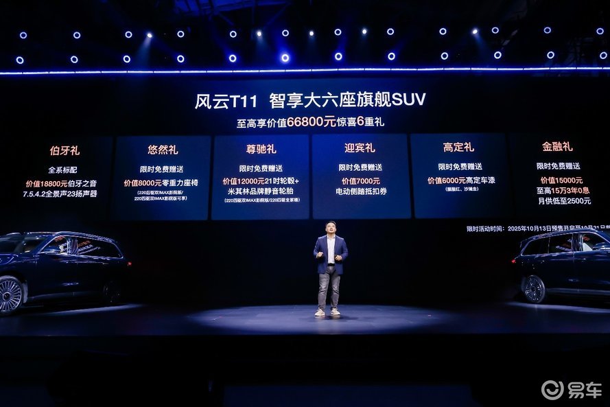 场景化体验方面,风云T11从“交通工具”到“家庭第三空间”,像双iMax影院系统,前排30吋6K寰宇屏+后排17.3吋娱乐屏,配合伯牙音响23扬声器,秒变移动私人影院。