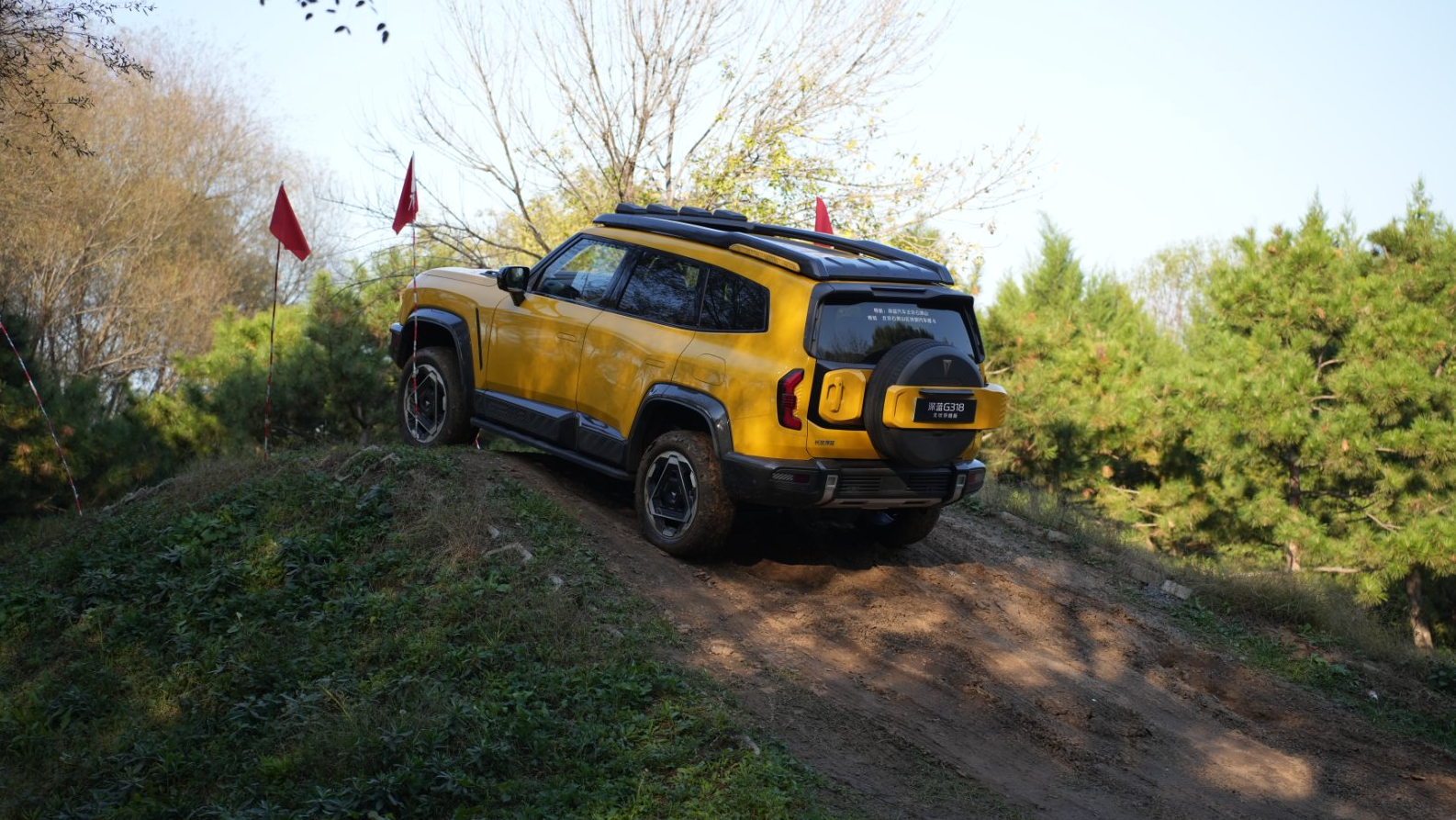 而深蓝G318则瞄准“可城可野的全场景需求”,越野配置为多元场景准备。配备了后桥磁吸式机械差速锁+中央无级差速锁,在与钛7面对同样的泥泞路时,表现要自如很多,完成脱困非常迅速,不拖泥带水。