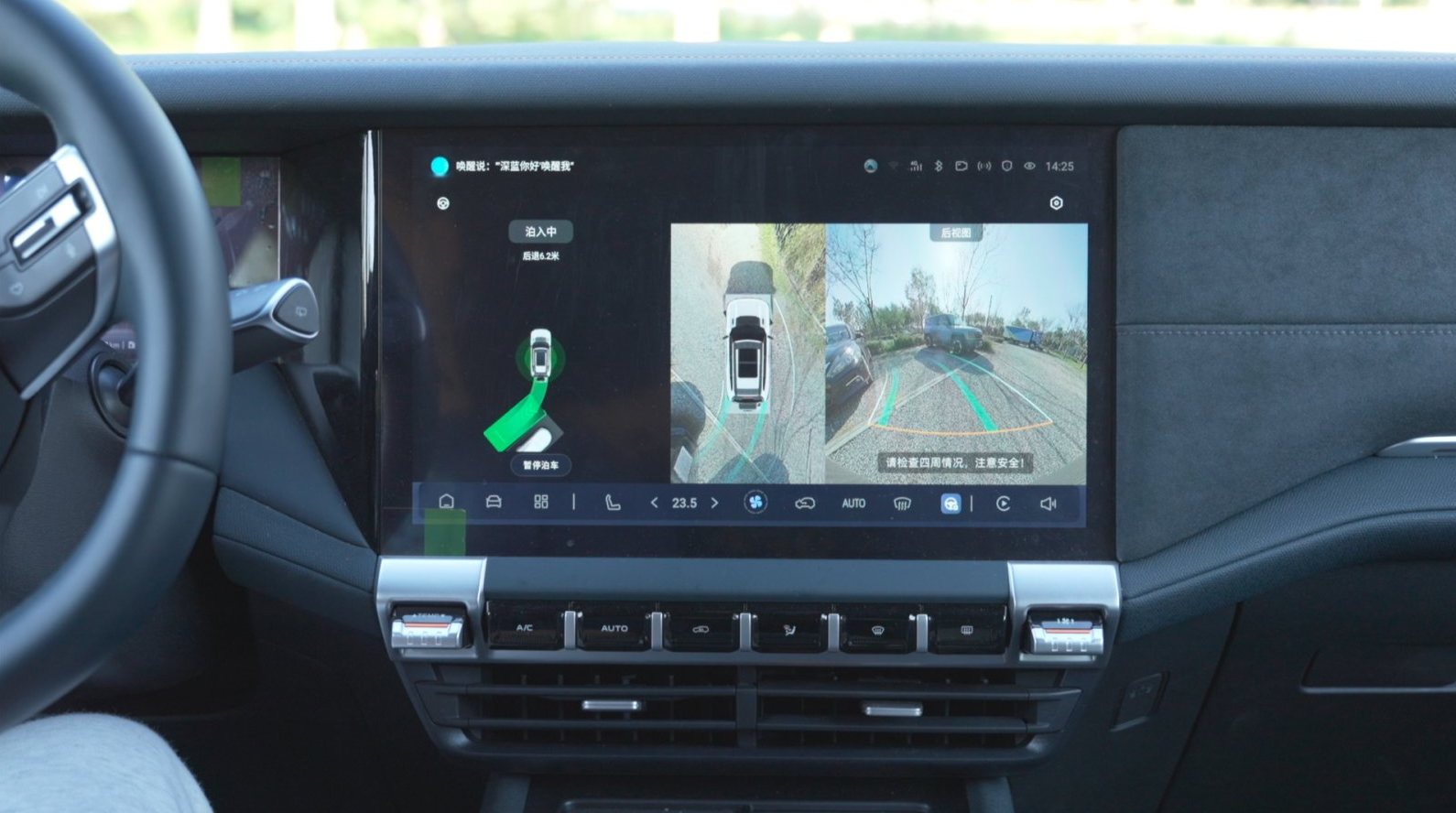 另外,便利性方面,两台车都支持自动泊车,可以搞定无规划车位和超窄车位。断头路泊车场景中,深蓝G318会循迹倒车,跟着之前的行驶轨迹精准入库,钛7需要重新规划路线,耗时稍长一点,比如在“一位难寻”的商场地下车库遇到一个断头路车位,两台车总归都能停进去,只是钛7可能要“磨蹭”一会儿。