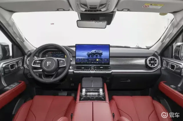 内饰是新款坦克400的升级重点。新车换装大尺寸方形悬浮中控屏,并采用怀挡设计,释放了中控台下方的空间。