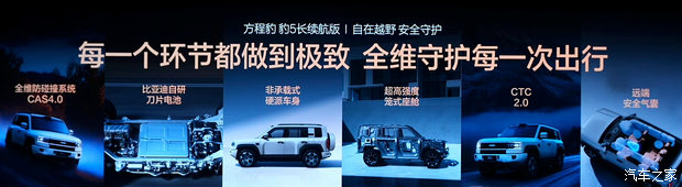 动力上采用DMO+电驱越野开创平台,搭载1.5T发动机与电机组成的插电混动系统,系统总功率505kW,最大扭矩760N·m,0-100km/h加速时间仅需4.8秒。新车换装47.8kWh电池,电池能量密度达到140Wh/kg,CLTC纯电续航可达210公里,综合续航达到1310km。新车在底盘上应用了CTC2.0技术,并标配远端安全气囊。(文/汽车之家 岳长兴)