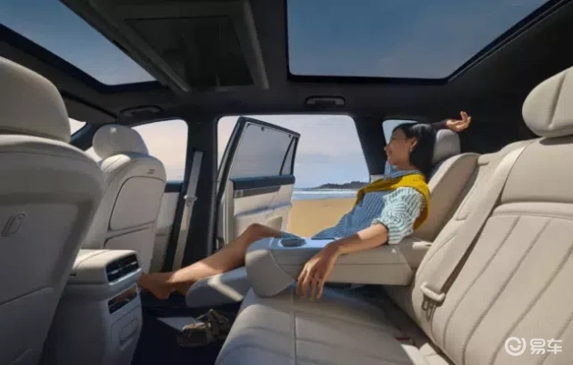 基于出色的空间优势,2026款eπ008五座版在配置上同样表现出色。它配备了同级唯一的二排电动魔毯座椅和6.92英寸二排智能扶手屏,座椅支持电动腿托与靠背调节,相比零跑C16的普通座椅,更加豪华舒适。二排乘客通过扶手屏即可控制座椅、空调等,享受智能化的舒适体验。此外,还配备了双层夹胶隔音玻璃、隐私玻璃、LED美妆镜和冷暖智能冰箱等配置,细节处理上同样领先同级,女性用户补妆更便捷,家庭露营携带冷饮水果也无后顾之忧,提升了出行的幸福感。