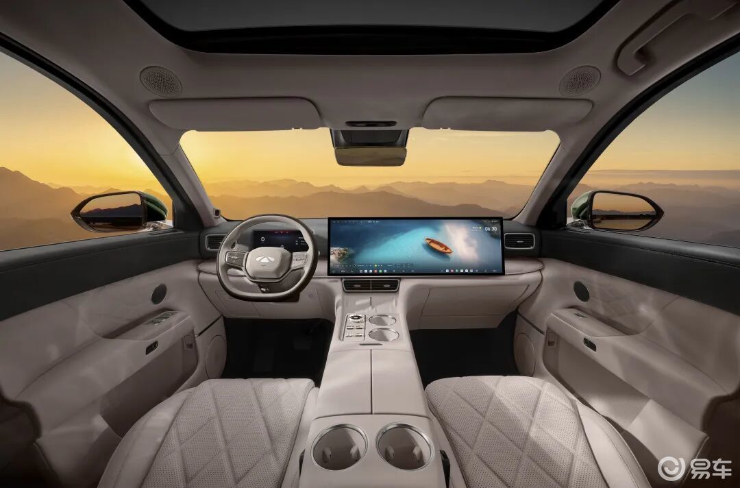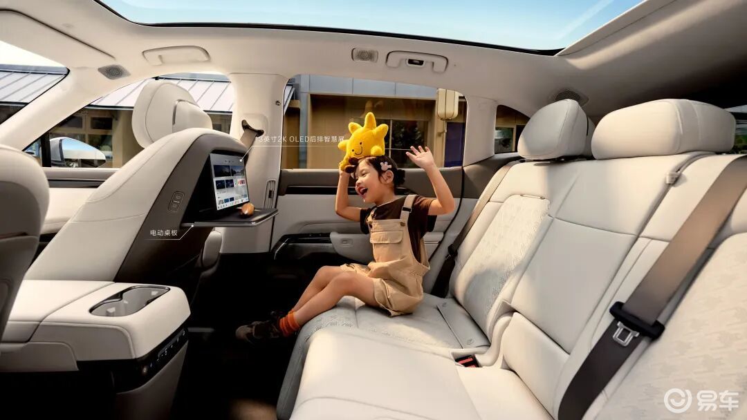 而内饰则新增了黑紫和黑橙两款内饰配色,配备后排电动遮阳帘、后排电动桌板、后排电动智慧屏、后排中央扶手6英寸点触智慧屏等配置。