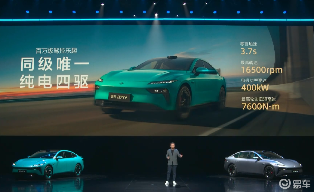 纯电版提供单电机、双电机两种,其中双电机四驱版总功率高达400kW,最大扭矩620Nm,百公里加速时间仅为3.7秒。