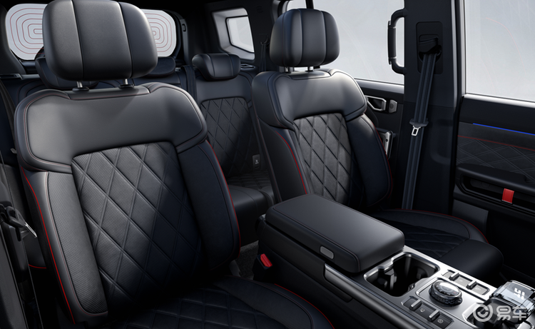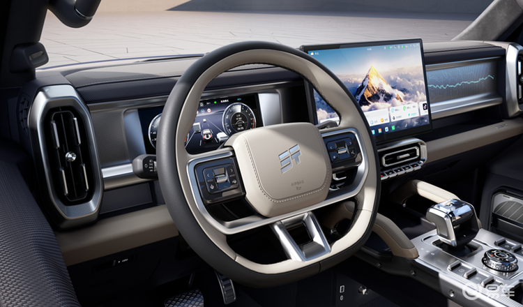 座舱部分同样可圈可点,9处力量派拉手体验进阶,上车轻松入座,颠簸一把安稳。增加了后视镜、中控区域两处的实体按键,细节上采用钻石纹理按键设计,高频操作一键直达,极端路况完全可以精准盲操。立柱拉手增加了精细化装饰,门饰板采用软包装饰,包括座椅都采用了全新造型菱形格双排缝线,触感和质感体验升级不少。