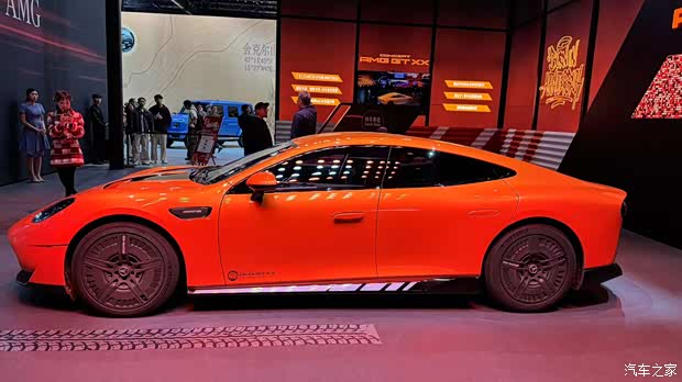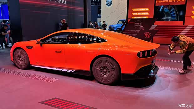 梅赛德斯-奔驰带来了旗下的AMG GT XX车型。这台性能版车型采用橙色涂装,并配备3台轴向磁通电机,总功率达到1340马力。该车也在梅赛德斯-奔驰XX科技创新日上迎来了中国首秀。新车采用全新的设计语言,车头造型十分硬朗且冲击力,圆弧形大嘴造型中部为巨大的奔驰Logo,周围一圈为环形灯带,大灯组集成在两侧翼子板位置。同时,发动机盖上方还配备出风口造型。
