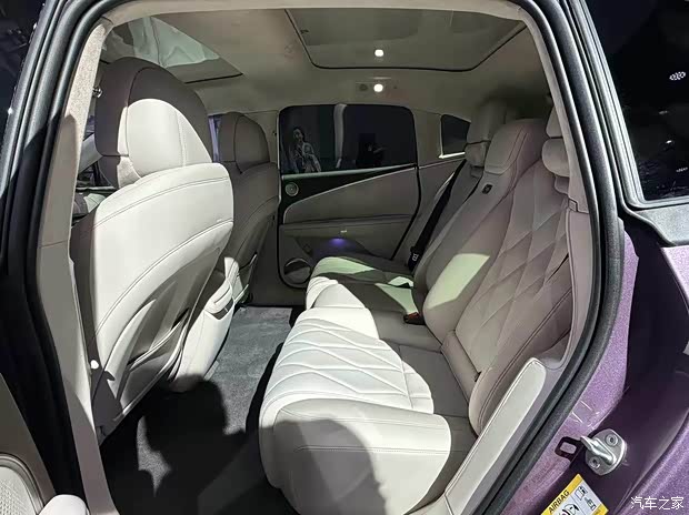 内饰座椅采用Nappa真皮包裹,座椅侧翼与坐垫边缘采用菱格缝线工艺,增强支撑性与透气性;前排配备8向电动调节、加热、通风及3种模式按摩功能,后排支持4向电动调节与加热,中央扶手集成触控屏,可控制空调、座椅及多媒体系统。搭配主动降噪技术与14扬声器燕飞利仕音响,音响布置覆盖前后排,车速120km/h时车内噪音低于65分贝;EASi电磁主动悬架可根据路面颠簸程度自动调节阻尼,兼顾行驶平顺性与侧向支撑。