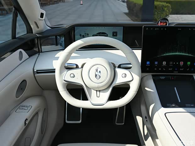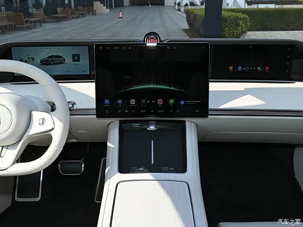内饰方面,整体采用时下流行的极简风格设计,内饰配色更大胆,并注重细节材质的打造,包括木质纹理饰板和大面积的软包材质,车内还拥有动感的氛围灯。中控屏的尺寸很大,全系标配鸿蒙座舱5.0系统,智能化体验毋庸置疑。主驾的仪表屏也可显示多种车辆信息,新车还配备有人脸识别、抬头显示、全车配备多个扬声器。由于采用了怀挡设计,中控台下方还提供了无线充电面板,并保留部分快捷按键,下部还提供了巨大的储物空间。座椅有零重力座椅加持,并支持通风加热按摩。辅助驾驶层面,新车将搭载Momenta的高阶辅助驾驶系统,采用一体融合式的端到端大模型,支持城市与高速的高阶辅助驾驶。