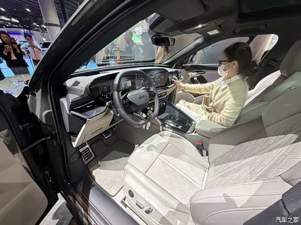 在造型设计上,这款概念车延续了品牌标志性的家族化风格,巧妙融合了AUDI标志性的运动特质与高性能车型特有的美学理念。车头部分采用了新能源车型惯用的封闭式前格栅设计,并保留了品牌标志性的点阵元素和数字化细节。值得注意的是,车辆顶部配备了激光雷达,预示着其在自动驾驶辅助系统方面将具备出色的性能表现。