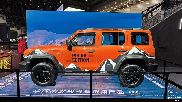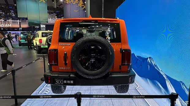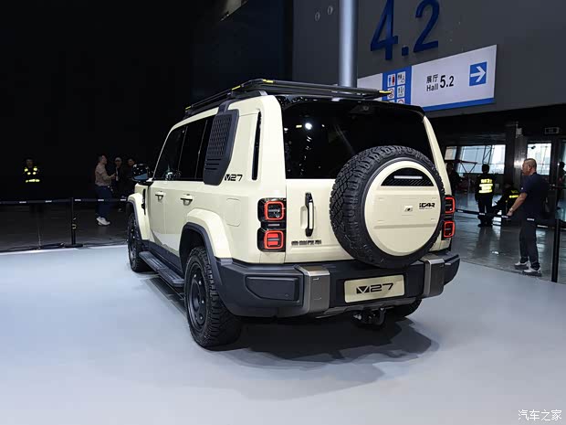 外观延续家族 “一拱、二圆、三横” 设计语言,新增全套越野专属套件:包括带保护罩的大灯与日间行车灯、重新设计的前后保险杠、外挂备胎装饰罩及侧裙饰板。车身配备涉水喉、发动机舱盖进气口与金属侧踏板,全车绘制等高线拉花,车门下方加装硬质包围,搭配隐藏式外挂备胎,既强化越野视觉氛围,又提升复杂路况防护能力。