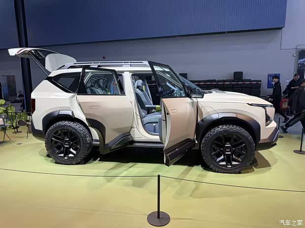 外观来看,前脸采用封闭式格栅设计,LED大灯营造出笑脸风格。车顶配有激光雷达,将搭载高阶智能辅助驾驶系统。车身侧面则是传统SUV造型,隐藏式B/C/D柱的设计,营造出悬浮式车顶的视觉效果。另外,在D柱位置还拥有两条横向饰条,或许对于风阻系数也有一定帮助。车身颜色则将会提供海苔绿、橡果棕等。动力和续航方面,新车将带有500km级大电池,16分钟快充(30-80%)和油冷电驱总成。
