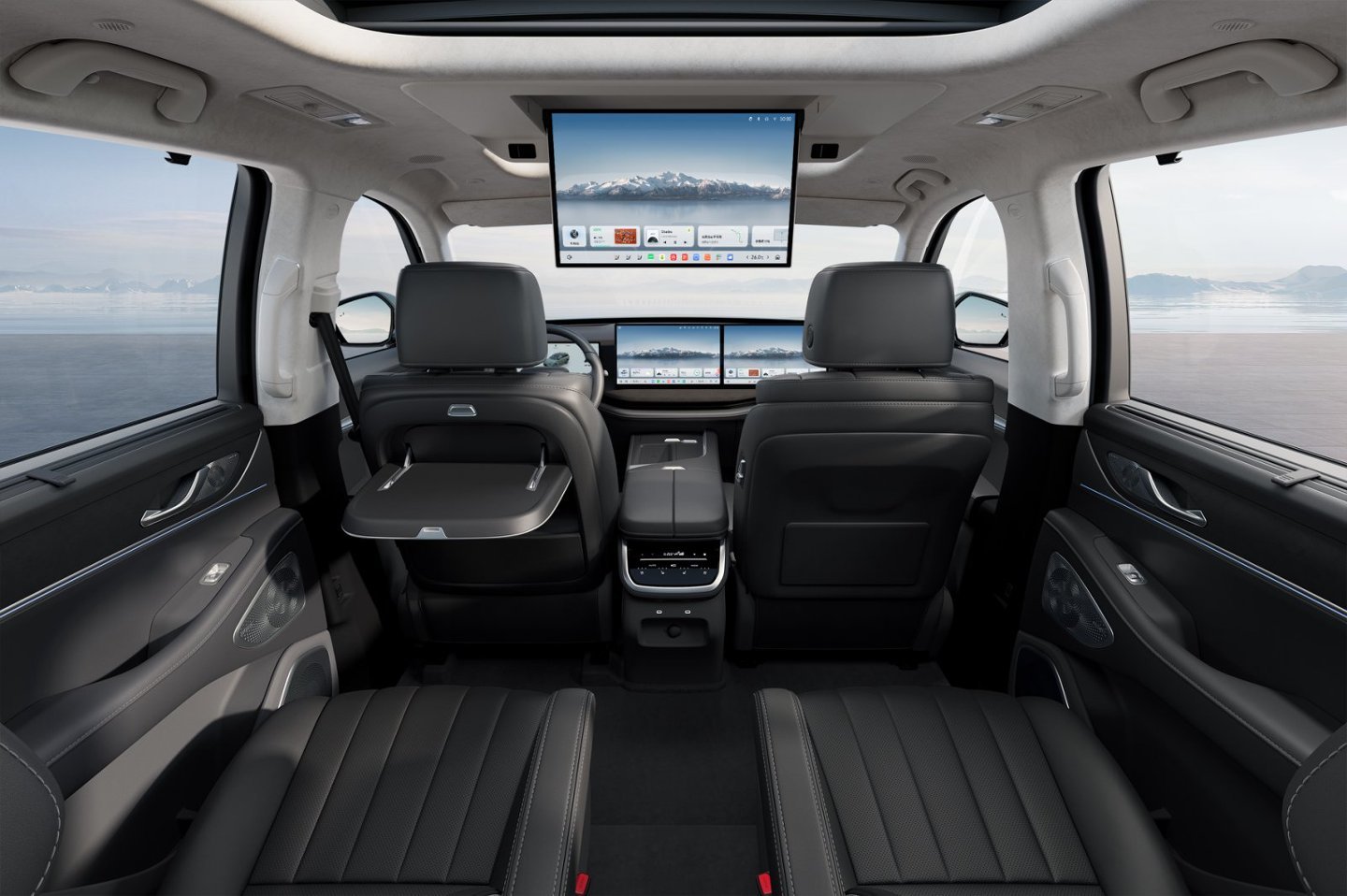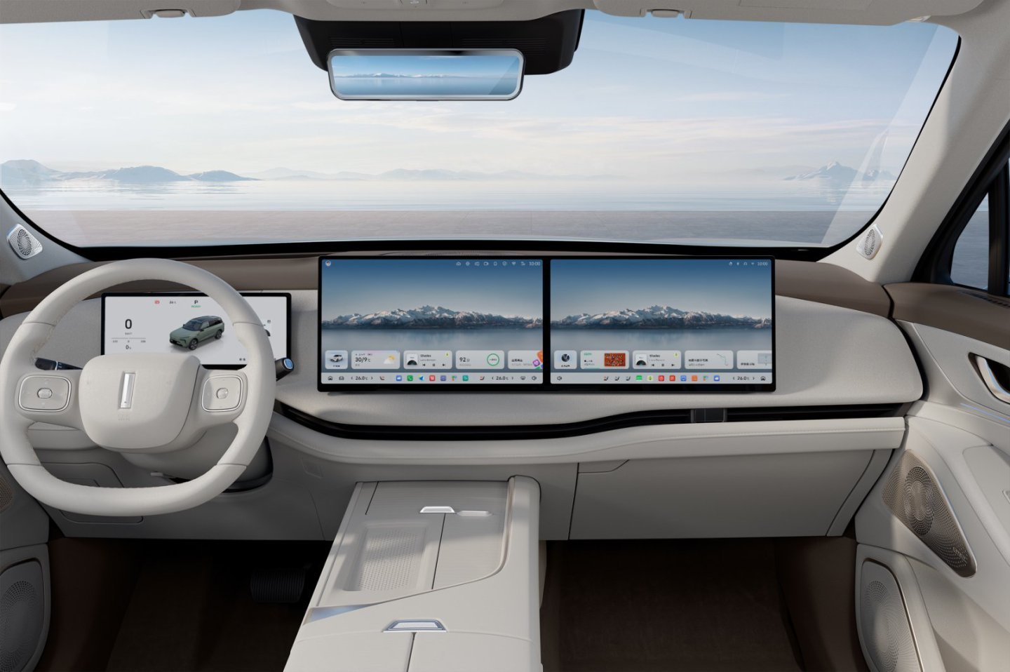 车内同样延续在售车型的整体设计,标配双15.6英寸中控车机+副驾娱乐屏所组成的双联屏,尺寸出众同时2.5K的分辨率也足够清晰,12.3英寸的液晶仪表+29英寸的HUD抬头显示系统,车辆信息展现丰富;隐藏式的空调出风口、电子怀挡等设计,也让整车内部的高级感更为明显。