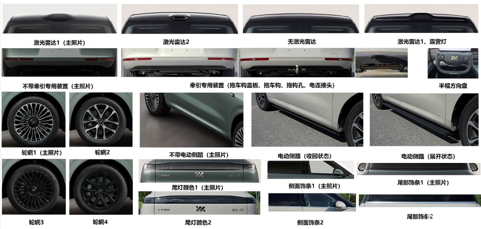 外观方面,LS8延续了LS9的家族设计语言,前脸采用封闭式造型,配备星环式贯穿灯带与“T”字形大灯组,车侧采用隐藏式门把手和悬浮式车顶,车尾为贯穿式尾灯组。车顶配备激光雷达,并有两种造型可选,部分车型还拥有露营灯。车身长宽高分别为5085/2000/1807(1817)毫米,轴距为3060毫米。根据申报信息,该车还可选装电动侧踏、多种轮圈样式、侧面及尾部饰条,以及牵引专用装置等配置。