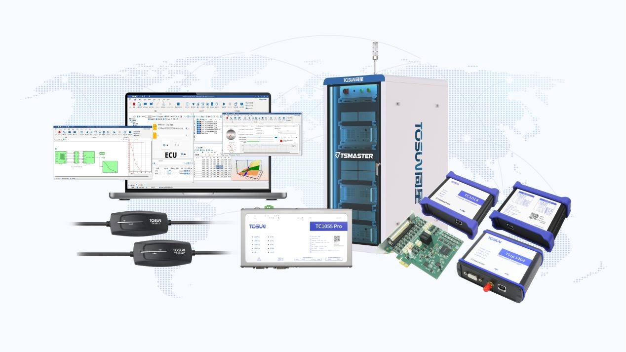 2024年以来,同星智能持续在高精度、高稳定性、高兼容性方向推出多款硬件,涵盖了CAN/CAN FD/LIN/FlexRay/Ethernet等主流的车载总线通讯网络。TOSUN硬件设备采用免驱设计,支持微秒级别的硬件时间戳,设备之间支持软件或者硬线同步,满足自动驾驶域控制器多通道数据同步测试需求。