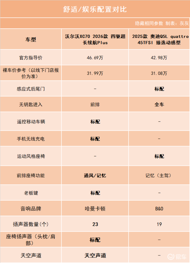 目前,2025款奥迪Q5L的终端优惠大概在10万元上下(具体以当地门店为准),入门版优惠后起售价预计在26万元左右;沃尔沃XC70全系限时优惠15.3万元之后,起售价为26.99万元。